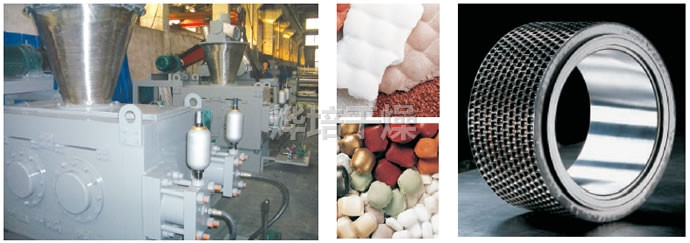 挤压造粒的形式可以有对辊式和轮辗式两种,对辊式挤压是先压成大块,再破碎成颗粒,这样装置的能力大、颗粒强度高、能耗低,对辊挤压在国外使用广。轮辗式是在辊表面直接做成有穴槽型的形状,一次挤成成型颗粒。产品强度较低有时需添加粘结剂。适合做有机肥和复合肥等颗粒肥料。